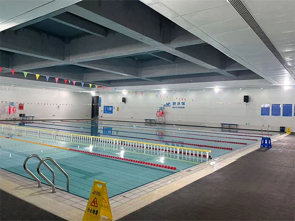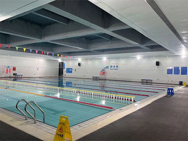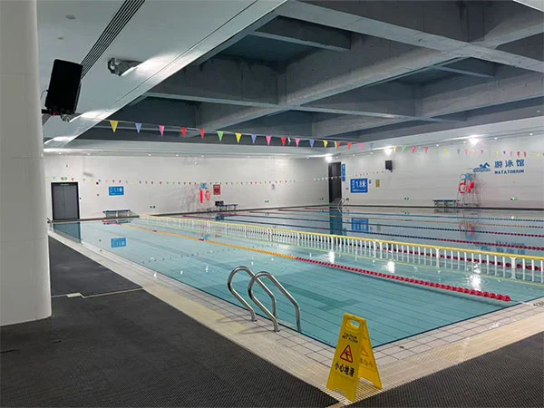 Зовнішня частина басейну представлена системою металевих панелей у вигляді риб’ячої луски, що створює ефект світла та тіні, схожий на луску, який змінюється залежно від вигину фасаду та напрямку сонячного світла, посилюючи «потік води». Відкрита вся конструкція даху критого басейну з фермою довжиною 48 метрів, що підкреслює явне вираження структурної логіки та підсилює просторовий масштаб і відчуття потужності спортивного майданчика. На території комплексу є два басейни: змагальний і тренувальний. Змагальний басейн має довжину 50 метрів і ширину 25 метрів, має 8 доріжок; Тренувальний басейн має довжину 50 метрів і ширину 17 метрів, має 6 доріжок. Обидва басейни мають глибину 2 метри.
