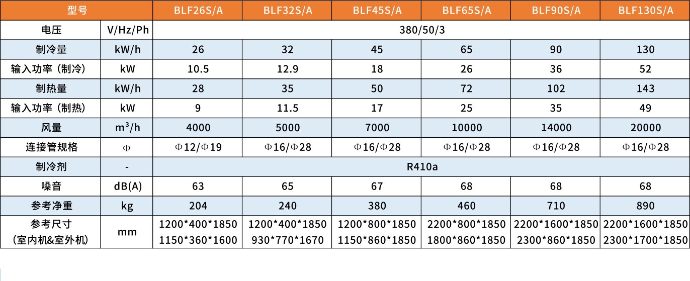 Цей блок має конструкцію роздільного типу з підлоговою внутрішньою шафою та зовнішнім блоком, що складається з одного або кількох зовнішніх модулів. Він доступний у двох основних моделях: одинарне охолодження та охолодження та нагрівання. Модель з охолодженням і нагріванням може бути додатково оснащена додатковим електричним нагріванням. Завдяки чудовій продуктивності, низькому рівню шуму, легкому встановленню та надійній роботі всі пристрої також можна підключити до системи дистанційного моніторингу з функціями автоматичного виявлення несправностей і сигналізації.